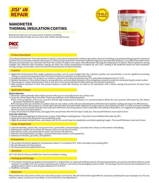 Jishan repair Nanometer THERMAL INSULATION COATING 18KG heat insulation paint