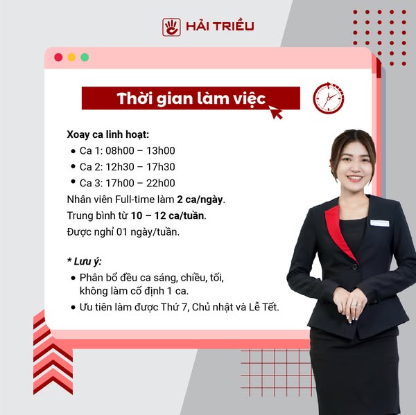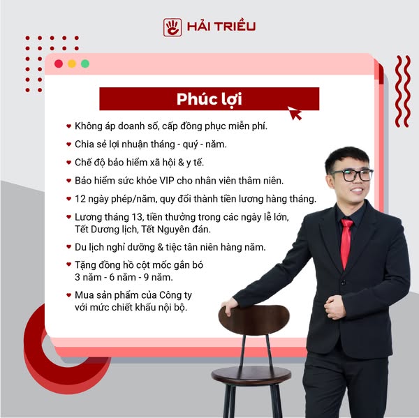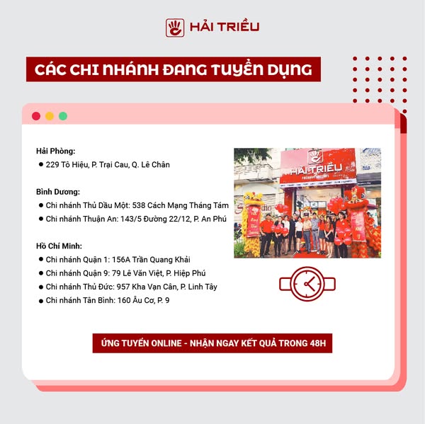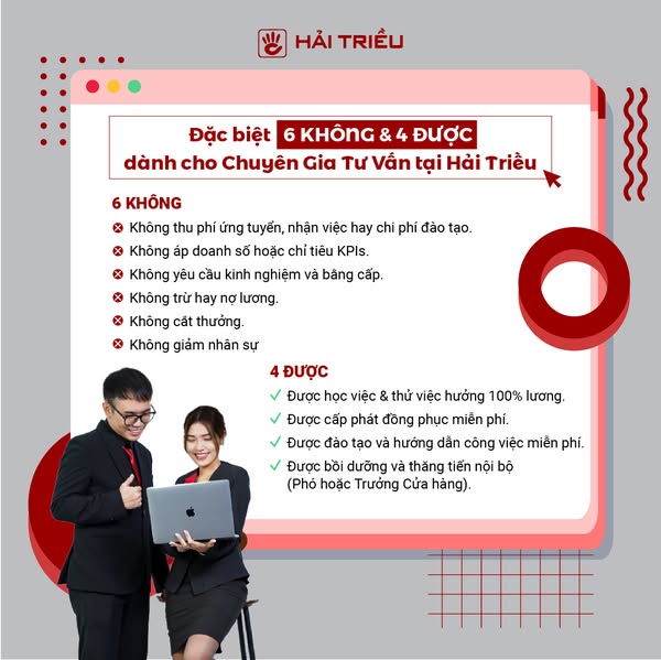 搜索关键词 Hải Triều tuyển dụng, chuyên gia tư vấn đồng hồ, việc làm không kinh nghiệm, smile deliverer, Hải Triều careers, Đồng hồ Hải Triều jobs, tư vấn bán hàng, customer service jobs, Vietnam retail jobs, Đồng hồ Hải Triều recruitment优势 Không yêu cầu kinh nghiệm,Không cần bằng cấp,Không áp doanh số,Đào tạo chuyên nghiệp,Môi trường làm việc tốt