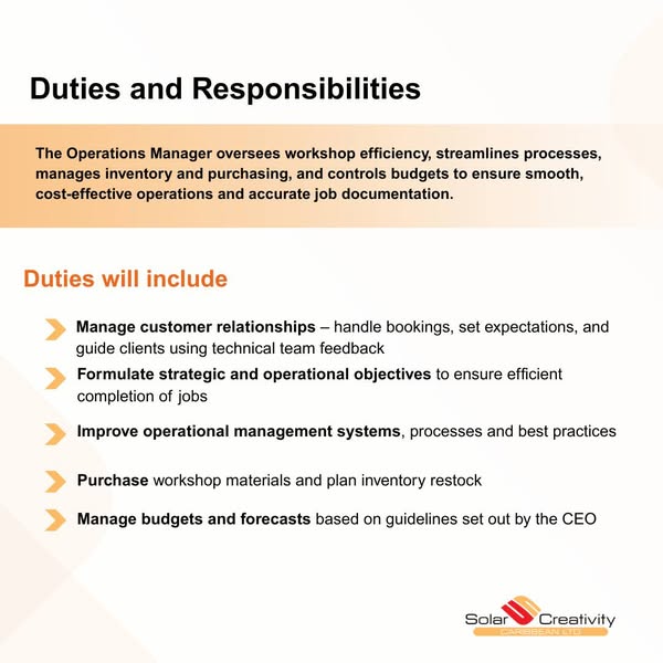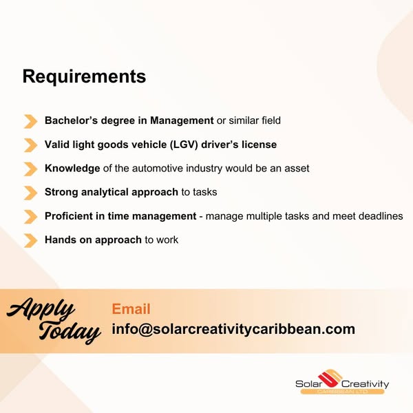 搜索关键词 Operations Manager, Hiring, Job Opportunity, Teamwork Skills, Efficiency Expert, Career Vacancy, Caribbean Jobs, Email Application, Solar Creativity, Management Position优势 Opportunity for teamwork,Focus on efficiency