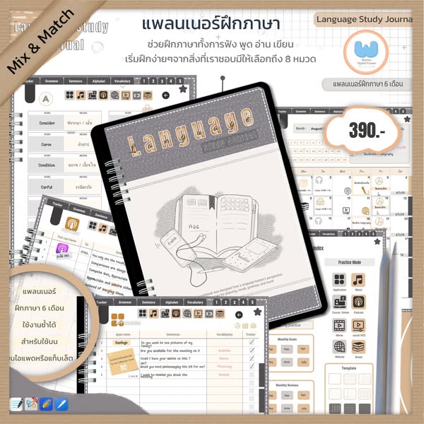 搜索关键词 digital planner, ipad planner, tablet planner, goodnotes templates, notability templates, budget planner, travel planner, language learning, fitness tracker, planner stickers优势 Mix and match designs,Reusable and undated,Suitable for iPad and tablets,Compatible with GoodNotes, Notability, Xodo,Variety of templates (life goals, budget, travel, meetings, language learning, fitness),Helpful for both beginners and experienced planner users,Easy to use and manage life