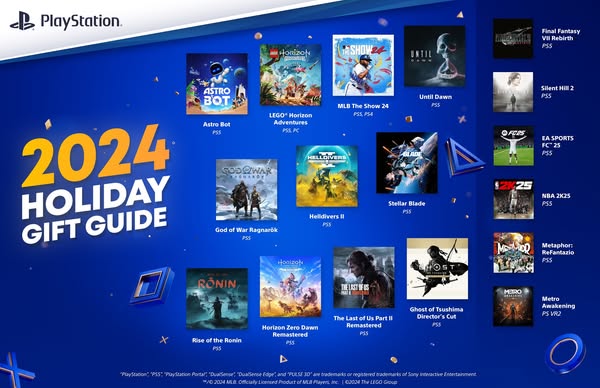 PlayStation Asia has shared their 2024 Holiday Gift Guide, which includes games such as Astro Bot and LEGO Horizon Adventures, and hardware like the PlayStation VR2, PULSE Explore wireless earbuds, and PULSE Elite wireless headset.
