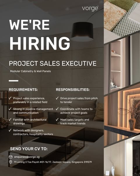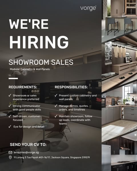 #VorgeSG #InteriorDesignSG #HiringNow #ShowroomSales #ProjectSales #DesignJobsSingapore #InteriorDesignCareer #SingaporeJobs