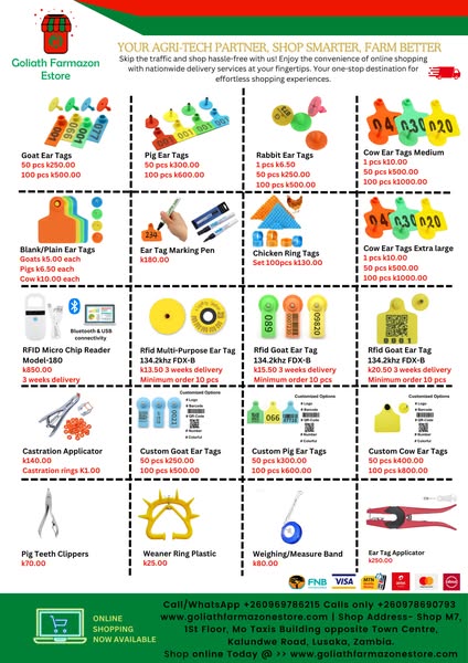 搜索关键词 livestock ear tags, farm animal equipment, agriculture technology Zambia, affordable farming supplies, pig nipple drinkers, castration rings, animal water fountain, durable ear tag applicators, customized livestock tags, farm management tools优势 Customizable ear tags,Durable materials,Affordable pricing,Nationwide delivery