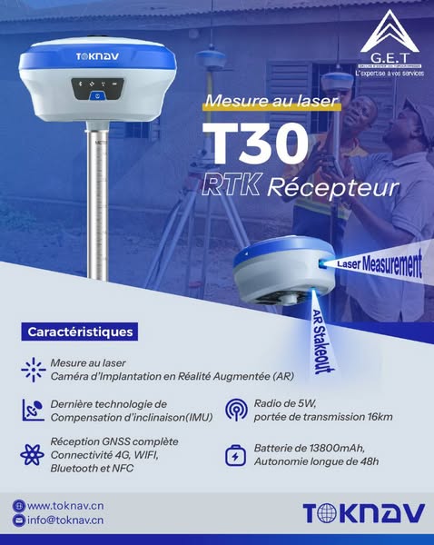 ✔️ Avec les Récepteurs TOKNAV, vous découvrirez le T30 équipé d'un système de navigation inertielle de haute précision combiné à la technologie AR (Réalité Augmentée) et laser❇️ pour le l’implantation en réalité augmentée et la mesure laser, ce qui rend vos opérations topographiques plus efficaces et plus pratiques.