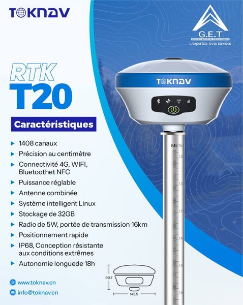 Le Groupe d'Expertise Topographique GET, Distributeur Exclusif de la marque TOKNAV, a le plaisir de vous présenter ses Récepteurs GNSS RTK. ®️
