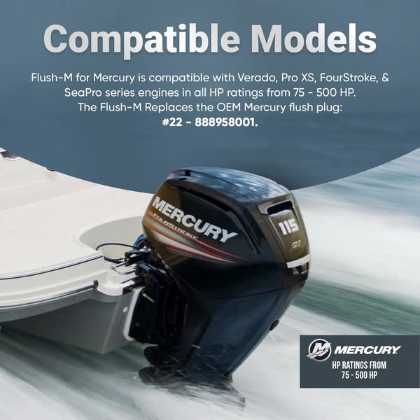 Now in stock! Flush-M Quick Connect flushing system that can be permanently fitted to your 75-500HP Mercury Outboard! Makes cold flushing super easy. Anyone can do it!