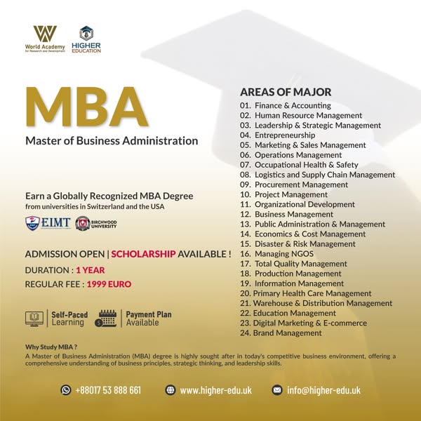 Academic Excellence: The MSEHSM programme is validated and awarded by renowned universities in USA and Switzerland which are globally respected university recognized for academic excellence and innovation. Secure Your Future in Safety & Sustainability Apply for a Partial Scholarship: Application Form Programme Info: Click Here Contact Us: Contact via WhatsApp ________________________________________ #MSEHSM #WorkplaceSafety #EnvironmentalManagement #OccupationalHealth #GlobalEducation #SustainabilityLeadership #CareerAdvancement #ScholarshipOpportunities