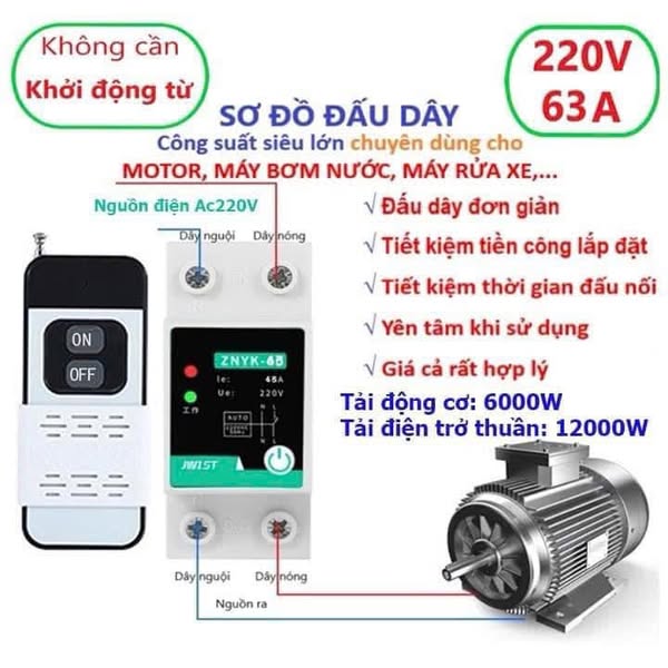 Dùng để điều khiển đóng ngắt thiết bị điện từ xa máy 1 PHA - 3 PHA như:
