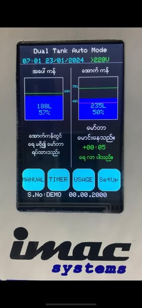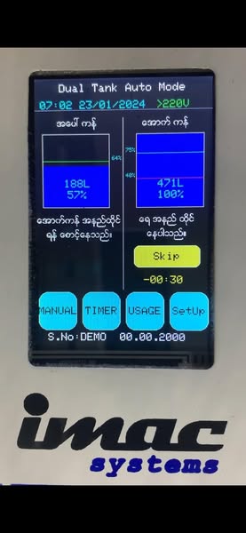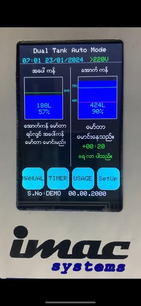 搜索关键词 water pump automation, automatic water control, Myanmar water system, IMACS automation, water tank control, LCD touchscreen control, dual tank system, motor protection system, industrial control system, smart water management优势 Automated water pump control,LCD Touchscreen options,Water level sensing and control,Motor protection features,Sediment settling system,Power surge protection,Durable sensors,Multiple tank configurations