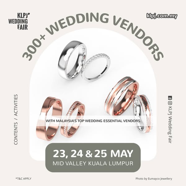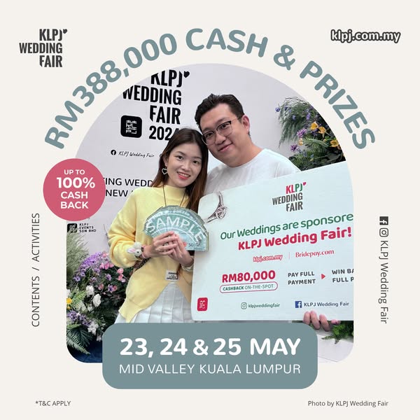 搜索关键词 klpj wedding fair, wedding fair malaysia, wedding vendors kl, wedding packages discount, wedding venues selangor, wedding photographers malaysia, destination weddings, honeymoon packages, wedding essentials, wedding planner优势 Largest wedding fair in Malaysia,300+ Wedding Vendors,RM388,000 Cash & Prizes to be won,Free Admission,Wide range of wedding services,Exclusive early bird specials