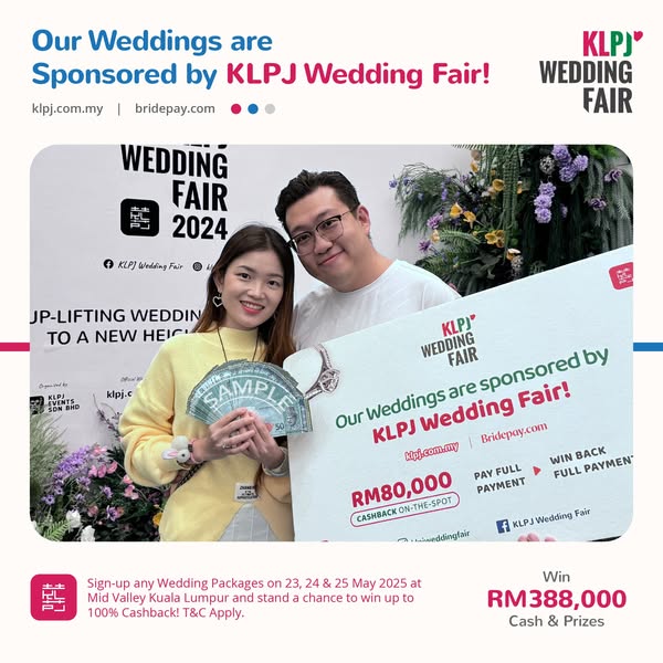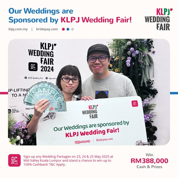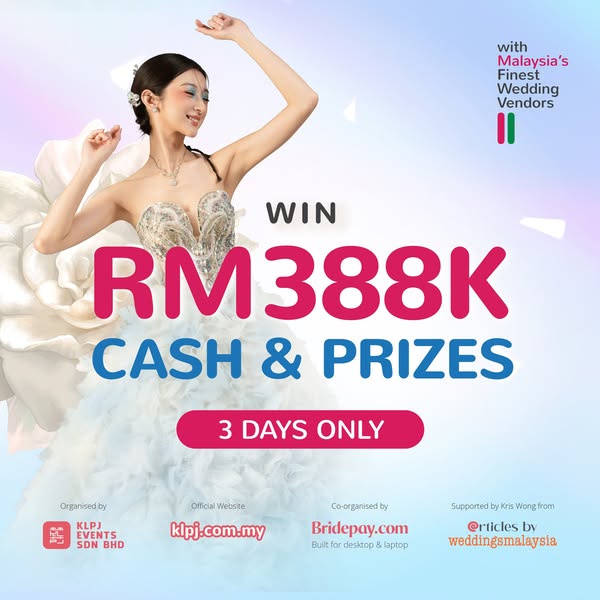 Exclusive opportunity to win RM388,000 #CASH and #PRIZES at KLPJ Wedding Fair on 📆 23, 24 & 25 May 2025 (Fri-Sun), 📍 Mid Valley Exhibition Center, Mid Valley Megamall Kuala Lumpur - 3 Days only!