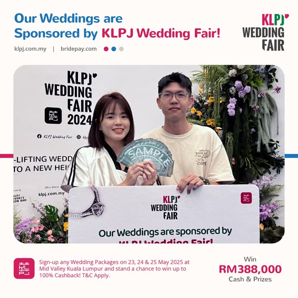搜索关键词 KLPJ Wedding Fair, Wedding Packages, Wedding Vendors, Malaysia Wedding, Wedding Prizes, Free Wedding, Wedding Cashback, Wedding Exhibition, Wedding Deals, Mid Valley Megamall优势 Chance to win RM388,000 in cash and prizes,Wide variety of wedding vendors (300+ exhibitors),Free admission,100% cashback opportunity,Guaranteed prizes for minimum spend