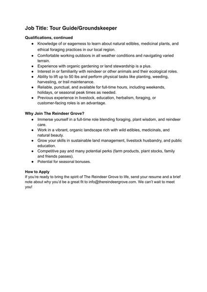The time has come! The Reindeer Grove is ready to grow a team of intrepid ambassadors of flora, fauna, and earth. Our lovely little seed that we’ve been cultivating over the last decade is ready for sprouting. Let us know if you’re interested in being a contributor to this endeavor!