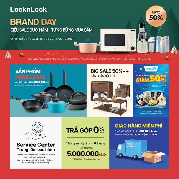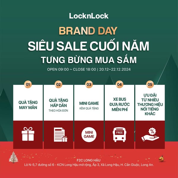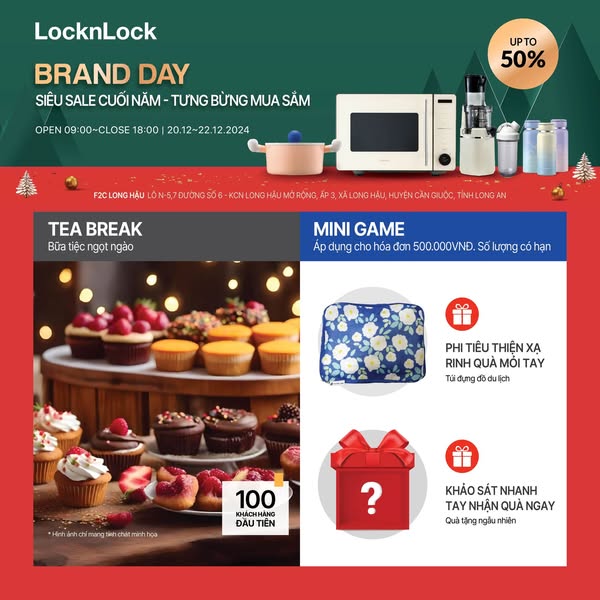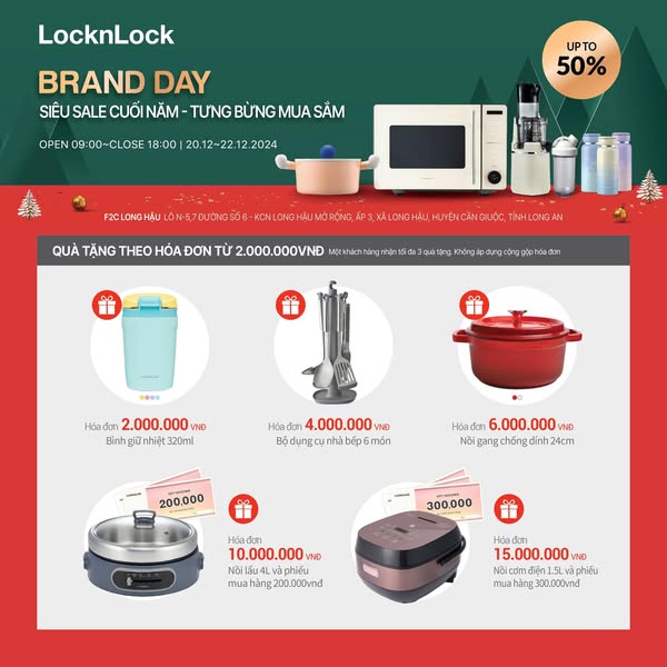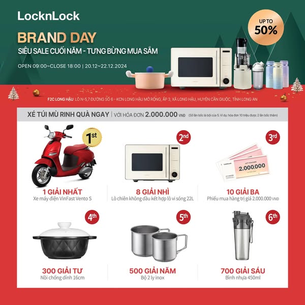 搜索关键词 LocknLock sale, Vietnam brand day, household goods discount, Long Hau shopping, kitchenware deals, food storage containers, free gifts promotion, year end sale, tet shopping, home appliances discount优势 Large variety of products,Significant discounts (up to 50%++),Exclusive deals on furniture,Free gifts and minigames,Free bus from Ho Chi Minh City