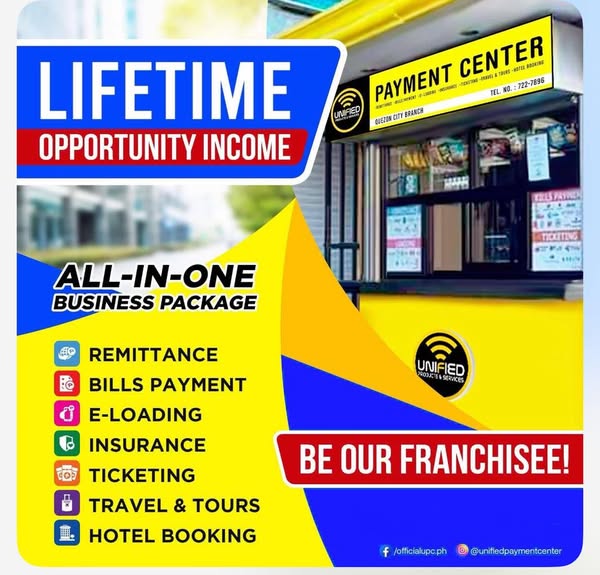 搜索关键词 franchise opportunity, payment center, business opportunity, bills payment, remittance services, travel and tours, e-loading business, start your own business, financial services franchise, all-in-one business优势 Multiple Revenue Streams,Comprehensive Training and Support,Established Business Model,High Demand Services,No Experience Required