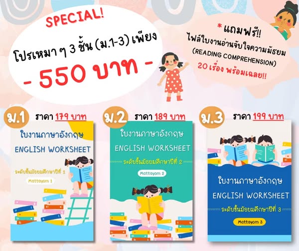 ✅จำหน่ายเป็นไฟล์ PDF มีใบความรู้ + แบบฝึกหัดทุกเรื่อง
