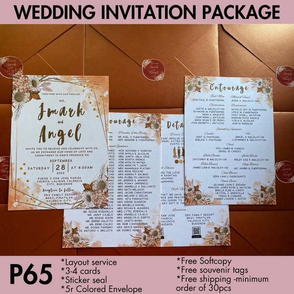 搜索关键词 wedding invitations, birthday invitations, debut invitations, unique invitation design, custom invitation, invitation packages, event invitations, special events invitation, wedding card design, save the date video优势 Beautiful and unique designs,Customizable themes and colors,Unlimited revisions,Free shipping nationwide,Inclusion of wax/sticker seal, envelopes, and softcopy