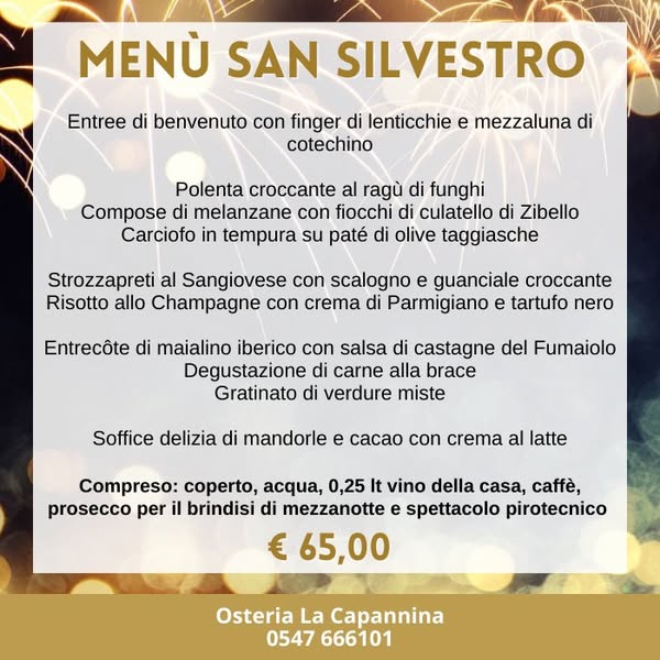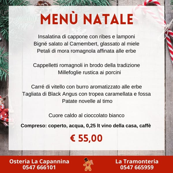 搜索关键词 Romagna cuisine, Christmas dinner, New Year celebration, Italian restaurant, scenic view, La Capannina, Longiano restaurant, traditional food, holiday dining, festive menu优势 Traditional Romagna Cuisine,Festive Menus,Scenic Views,Family Tradition
