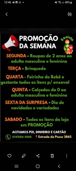 Toda quarta feira tem feirinha gestante e bebê todo para vc quê está montando o enxoval do seu bebê com desconto de até 50% aproveite já aceitamos cartões parcelas em até 12x
