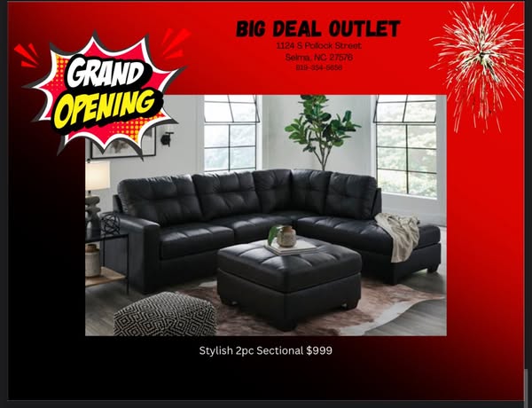 搜索关键词 Grand opening, Furniture sale, Appliance deals, No credit needed, Delivery service, Selma NC, Raffle ticket, Free prizes, Amazing savings, Buyout options优势 Grand opening deals and savings,Free prizes and raffle,Delivery and setup services,No credit needed financing options