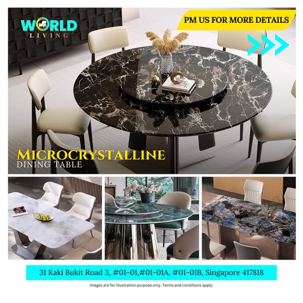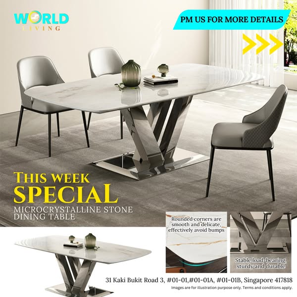 搜索关键词 luxury dining tables, sintered stone table, extendable dining table, modern furniture Singapore, home furniture, dining room ideas, furniture fair, World Furniture SG, Singapore furniture, Home Makeover优势 Exquisite design,Exceptional quality,Variety of styles (Sintered Stone, Microcrystalline, Extendable),Adaptable to hosting needs