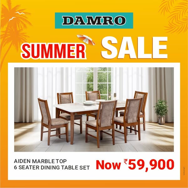 Create memorable moments with this elegant and durable dining table set from Damro. Perfect for family meals and summer gatherings—on sale now!