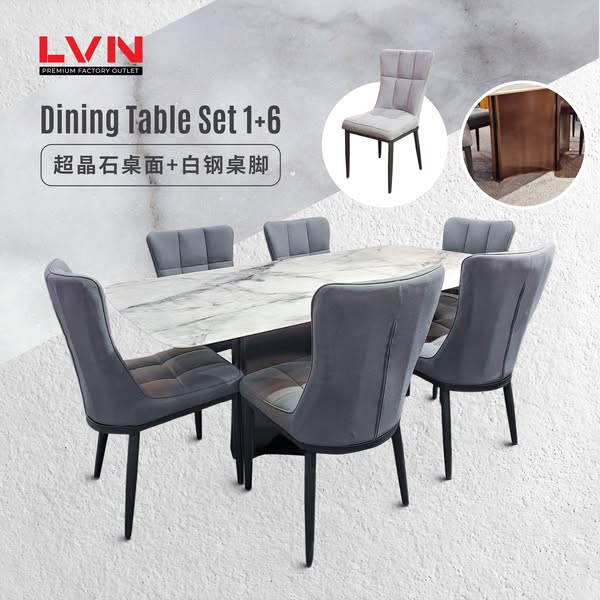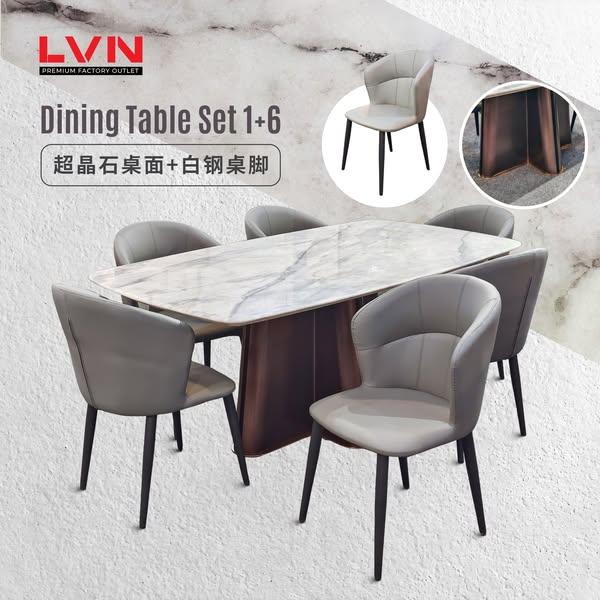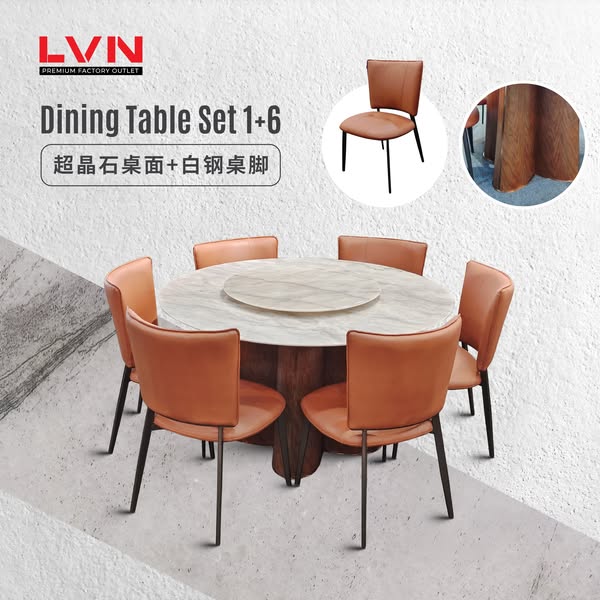 搜索关键词 dining table sets, crystal stone table, stainless steel furniture, modern dining chairs, 0 percent installment, LVN Furniture, Pekan Nanas furniture, family dining table, rotating center tray, furniture showroom优势 Ultra Crystal Stone Top,White Stainless Steel Base,Various Dining Chair Options,0% Interest Installment Payment,Round Tables with Rotating Center Trays,Rectangular Tables with Clean Lines