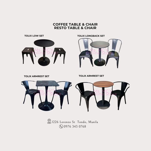 搜索关键词 restaurant chairs tables, coffee shop furniture, outdoor chairs, bulk order furniture, Manila furniture, same day delivery furniture, COD payment furniture, affordable chairs, durable tables, commercial furniture优势 Variety of styles,Suitable for indoor and outdoor use,Ready stock,Retail and bulk orders accepted,Multiple payment options,Same-day delivery available
