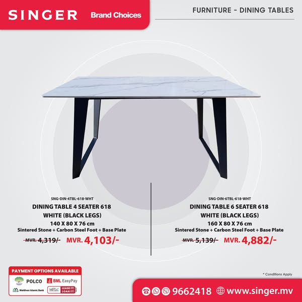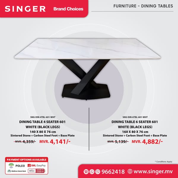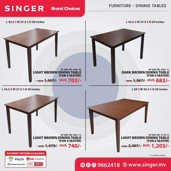#SingerMV #DiningSet #Diningchairs #diningtables #HomeStyle #SpecialOffer #LimitedStock #FurnitureDeals #BrandChoices #MIB #MFLC #BMLEasypay #LeaseitLoanit #