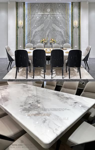 搜索关键词 dining table Cambodia, furniture Phnom Penh, luxury dining set, modern dining table, natural marble table, leather dining chairs, Royal Casa Furniture, top furniture store, stylish dining table优势 New and unique design,Natural marble options,Leather chair options,Durable and high-quality materials,Suitable for modern homes