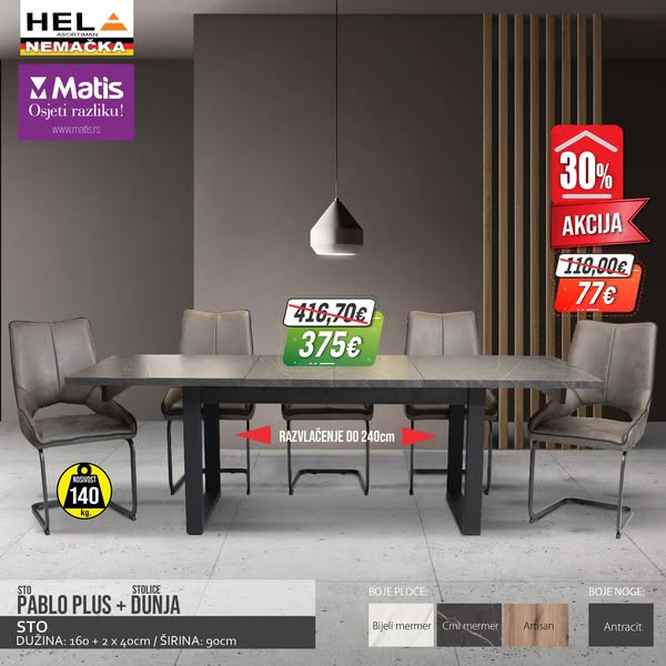 搜索关键词 dining room furniture, furniture sale, free delivery, interest free payment, Namos Dajkovic, Crna Gora furniture, Montenegro furniture, home furniture, modern furniture, dining sets优势 Wide selection of dining rooms,95% of goods in stock,Immediate delivery,Free transport and assembly (over 200EUR),Deferred payment up to 36 months with 0% interest