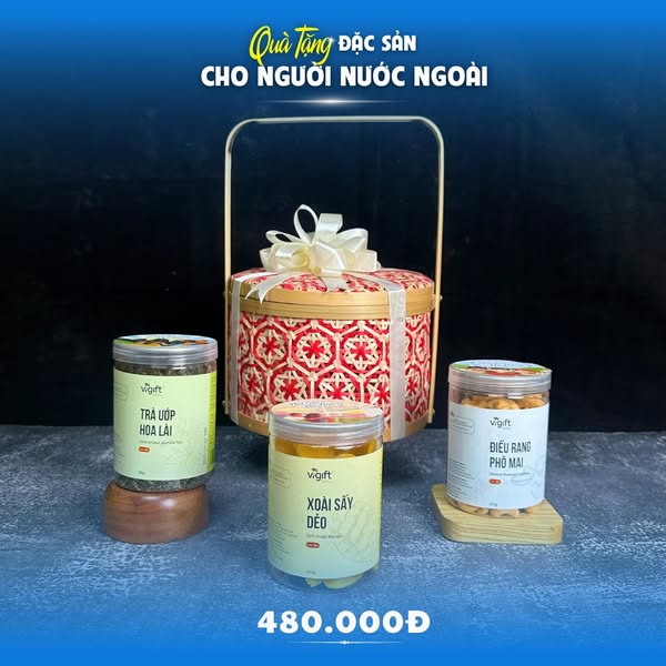 Người Thương đang tìm một món quà tinh tế, dễ ăn, mang đậm hương vị Việt Nam và Đà Nẵng? Vigift gợi ý những set quà có sự kết hợp giữa trái cây, bánh, trà – vừa đẹp mắt, vừa ý nghĩa cho bạn bè ngoại quốc.