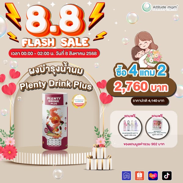 💖Plenty Drink Plus เครื่องดื่มบำรุงน้ำนม ซื้อ 4 แถม 2 ราคาปกติ 4,140 บาท ลดเหลือ 2,760 บาท