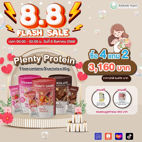 💖Plenty Protein ซื้อ 4 แถม 2 ราคาปกติ 4,470 บาท ลดเหลือ 3,160 บาท ของแถมสามารถคละรสชาติได้