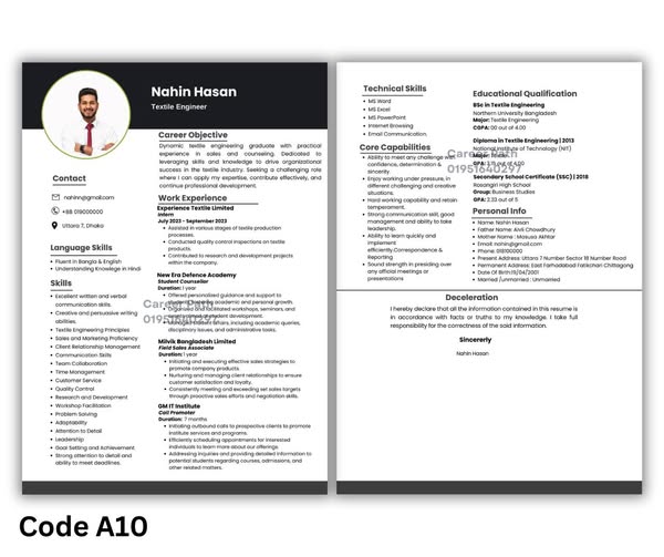 Professional CV এর সাথে Standard Cover Letter ফ্রি।