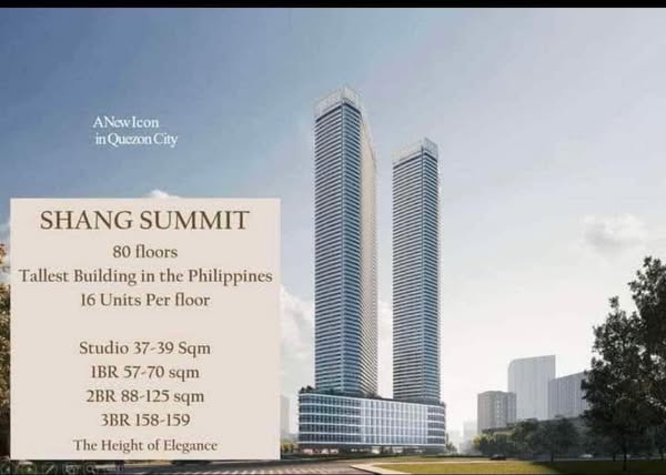 搜索关键词 luxury condominium, quezon city condo, philippines real estate, shang summit, investment property, condo for sale, urban living, prime location condo, 0 percent interest, residential condominium优势 Tallest residential building in the Philippines,Prime location in Quezon City,Near top business districts and schools,Upscale shopping and dining access,Flexible payment terms (5% downpayment, 72 months at 0% interest),Exclusivity with only 16 units per floor