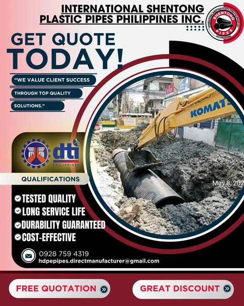 #HDPE #pipes ##sewers #drainagesolutions #drainage #directmanufacturer #hdpepipe #FreeQuote #discounts #manufacturer #DPWH #DPWHProject