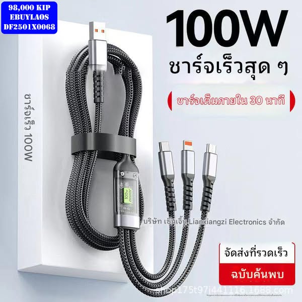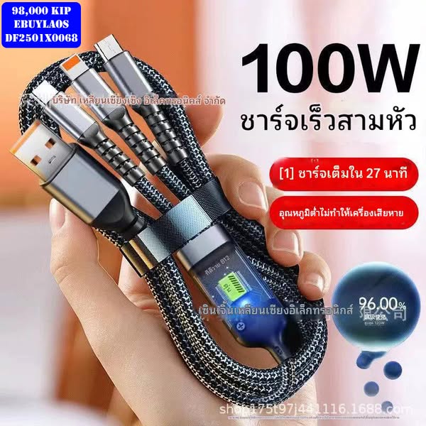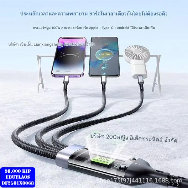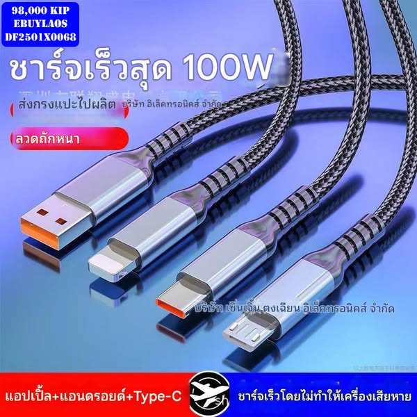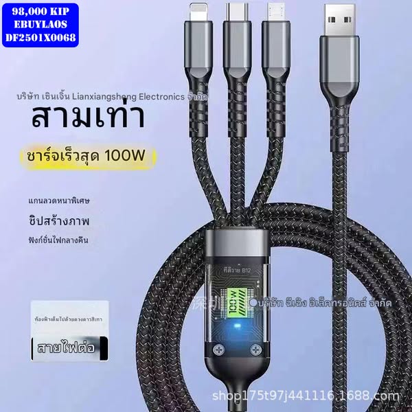ສາຍສາກໂທລະສັບ ມາແລ້ວ ເປັນສາຍສາກ 3 in 1 ສາກເຂົ້າໄວທັນໃຈແນ່ນອນ ສາຍຍາວ 2m ສິນຄ້າດີ ຮັບປະກັນຄຸນນະພາບ