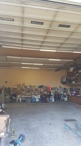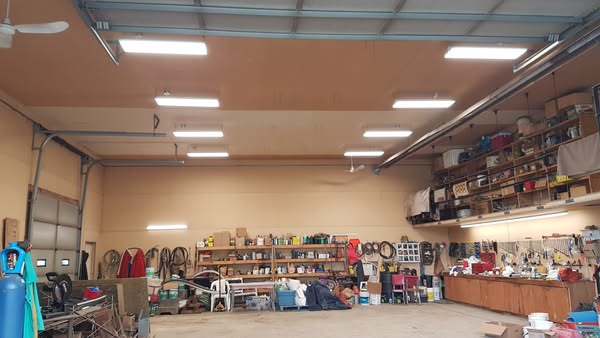 Here is a rural shop that was in desperate need of some attention in the lighting department. We installed new high bay LED lights that not only provide a far superior light but help cut costs on energy as well as maintenance because they remove the need to be constantly changing bulbs and ballasts.