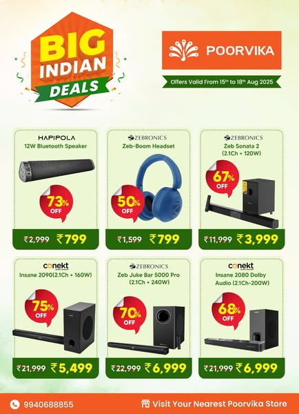 Enjoy wireless freedom 🕺 with top brands like boAt 🚤, Realme ⚡ & Xiaomi 📱 at up to 90% OFF! 🎶 From workouts to work calls, we’ve got your audio covered! ⏰ Valid till 18th August only – grab the deal before it’s gone! 🛍️🔥