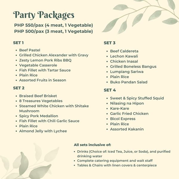 * Catering (complete with buffet set-up, and more!)