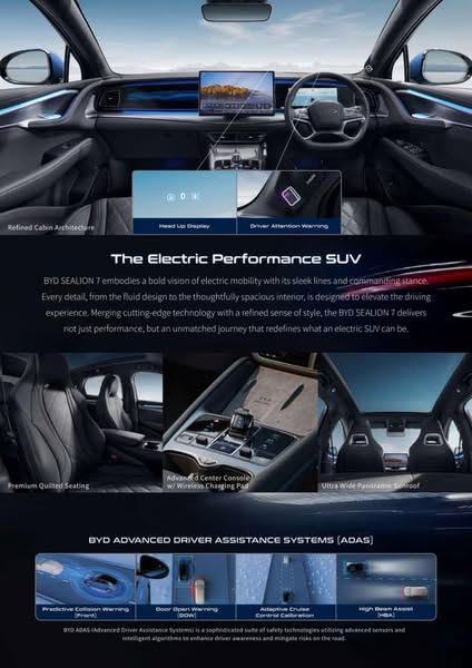 Experience the perfect fusion of cutting-edge technology and breathtaking design with the BYD Sealion 7. Featuring the revolutionary Blade Battery, this premium SUV delivers exceptional range, performance, and safety for your every journey. ⚡