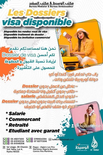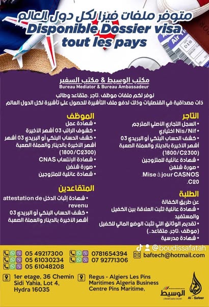 💢 وكالتنا تقدم لكم ملف تاشيرة الفيزا ✈️ للعاطلين عن العمل، ربات البيوت و ذوي الراتب المنخفض و التجار الغير مصرحين أو تكميلة ملفاتهم بملفات كاملة اصلية و صحيحة 🗂️📂 بصفة قانونية ⚖️