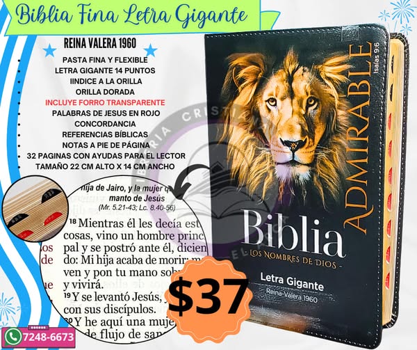 搜索关键词 Biblia letra gigante, Christian Bible, Religious Book, Bible for Reading, Bible con diseños, Biblia con Concordancia, Spanish Bible, Biblia con Plan de Lectura, Libreria Cristiana, Biblia con letra grande优势 Large Print,Unique Designs,Flexible Cover,Words of Jesus in Red,Concordance and References,Reading Plan,Index for Quick Search