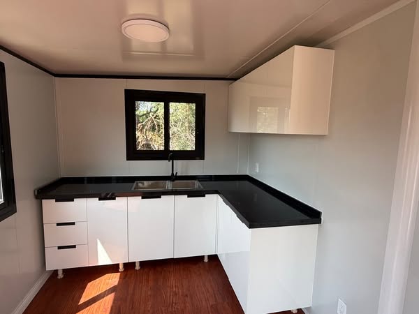 搜索关键词 prefab tiny home, Hawaii living, custom home, affordable housing, island home, sustainable living, easy installation, quality construction, home warranty, upcountry home优势 Leak-proof roof with extended overhangs,USA custom plumbing for easy hookups,USA 30amp breakers and wiring,Custom cabinets and bathroom layout,Customizable options,Superior installation and 2-year warranty