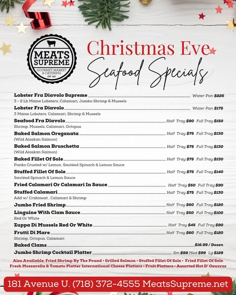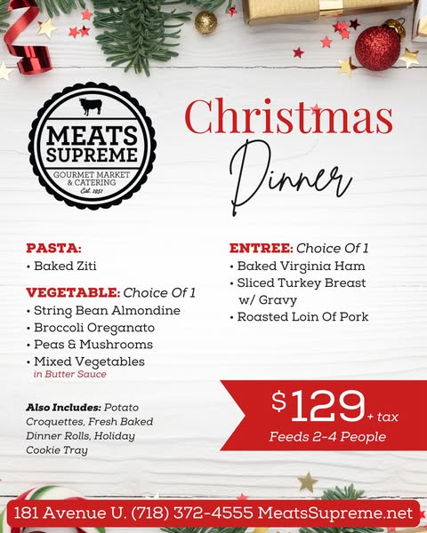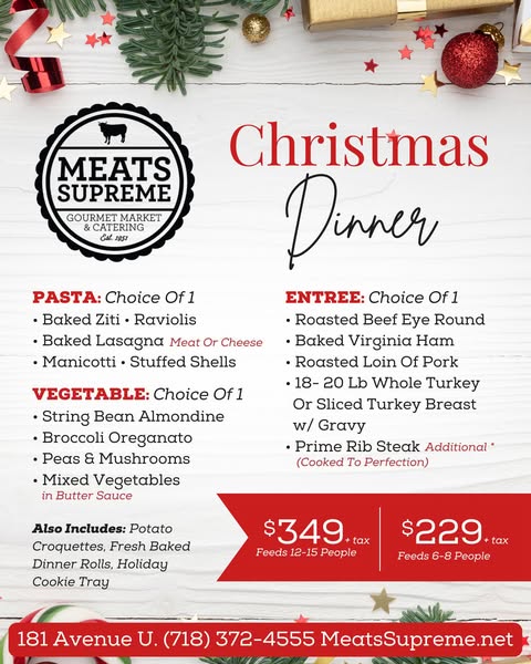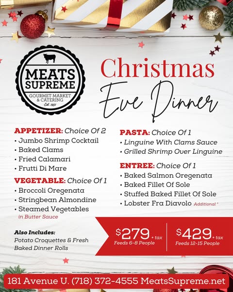 搜索关键词 Christmas dinner package, Christmas Eve seafood, holiday meal delivery, restaurant near me, avenue U Brooklyn, Christmas specials, holiday takeout, family Christmas meal, convenient Christmas dinner, easy Christmas meal优势 Convenient holiday meal options,Seafood specials,Delivery and pick-up available