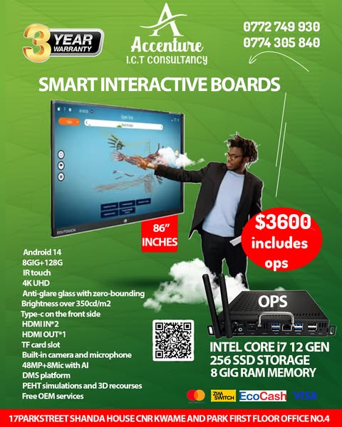 "Transform your classroom or business with our interactive Smart Boards! Enjoy enhanced engagement, improved learning outcomes, and increased productivity. Our Smart Boards feature: