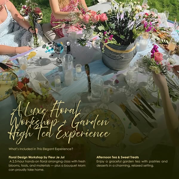 搜索关键词 Mother's Day gift, floral design workshop, afternoon tea experience, unique mom gift, Philippines event优势 Unique Mother's Day gift,Hands-on floral design experience,Relaxing afternoon tea in a charming setting,Beautiful photo opportunities,Dual Venue Access