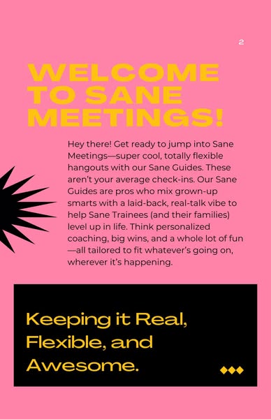 Morgan’s your go to fave Sane Guide—dishing out fun, real support with a big splash of awesome. She’s all about vibing with your Trainee in Sane Meetings, whether it’s a chill virtual hang or an in-person sesh at a game, park, or wherever life’s popping. And heads up—Sane Space is coming soon, where she’ll turn messy rooms into cozy, feel-good zones! With Morgan, it’s creative fixes, chill listens, and helping your Trainee slay it, Sane style!