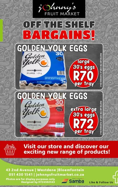 - Golden Yolk Eggs > 30's extra large eggs for R72 per tray